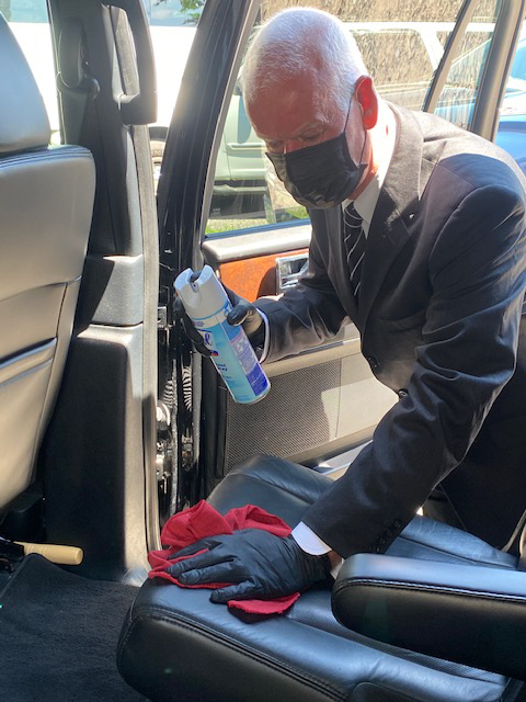- Following complete cleaning, washing and detailing of our vehicles inside and out, they are parked outdoors to allow for the sun’s UV rays to further disinfect door handles, trunk lids, etc.